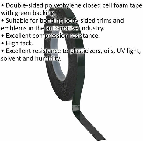 - Double-sided polyethylene closed cell foam tape with green backing.