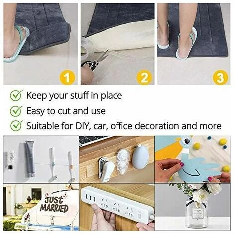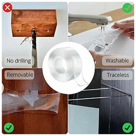 Strong and durable, transparent, washable, reusable, easy to remove, leaves no traces on the wall or other surfaces.