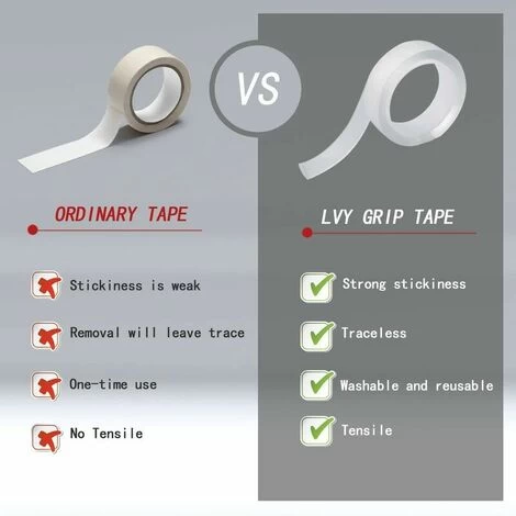 Before use the tape, make sure the contact surface is smooth, clean and dry. When sticking, it is recommended to hold the item for 5 seconds to achieve better stickiness. The masking tape can hold a pound of items on a smooth surface. Avoid heavy or valuable items with this tape.