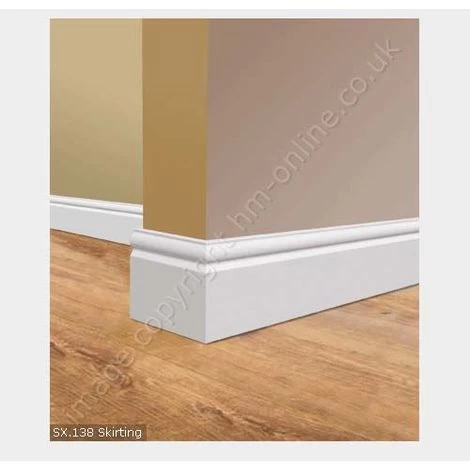 SX138 ogee skirting board is an easy installation waterproof skirting board. Made from Duropolymer the SX138 skirting board is a plastic skirting board which is impervious to water and requires only the top coat of paint to complete. The SX138 is a 14cm high plastic skirting board with an ogee skirting board design. The SX138 plastic skirting board can be used as a diy skirting board throughout the home. Use as bathroom skirting board shower room skirting board utility room skirting board kitchen skirting board lounge skirting board dining room skirting board hall way skirting board and bedroom skirting board. Additionally this ogee skirting board can be used as a cable tidy tucking electrical cables in its void more conveniently than lifting the floor or in the walls. Skirting board lights can also be fitted ideal for entrance lighting hallway lighting and stair lighting. This is a plastic waterproof diy skirting board far more practical than MDF skirting board or wood skirting board. This is another excellent easy to install DIY skirting board from Orac.