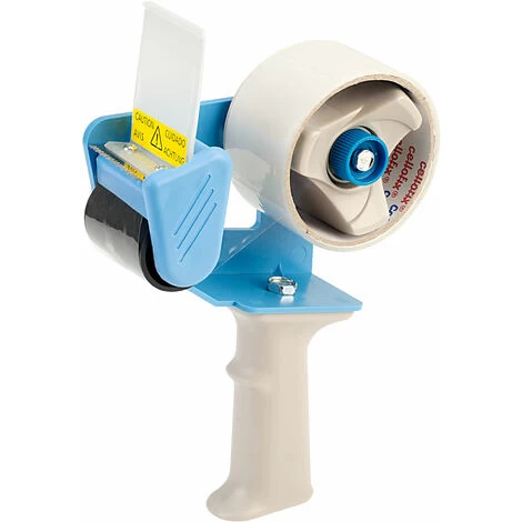 A lightweight tape gun manufactured from steel and high impact plastic.