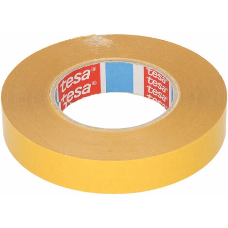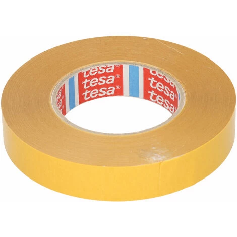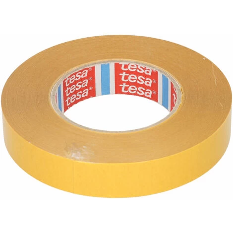 Double-sided tape from Tesa® with a non-woven backing, ideal for the permanent mounting of plastic and metal including aluminium, polystyrene and polypropylene. The thick layer of synthetic rubber adhesive bonds well to uneven surfaces and boasts a very high initial bond.