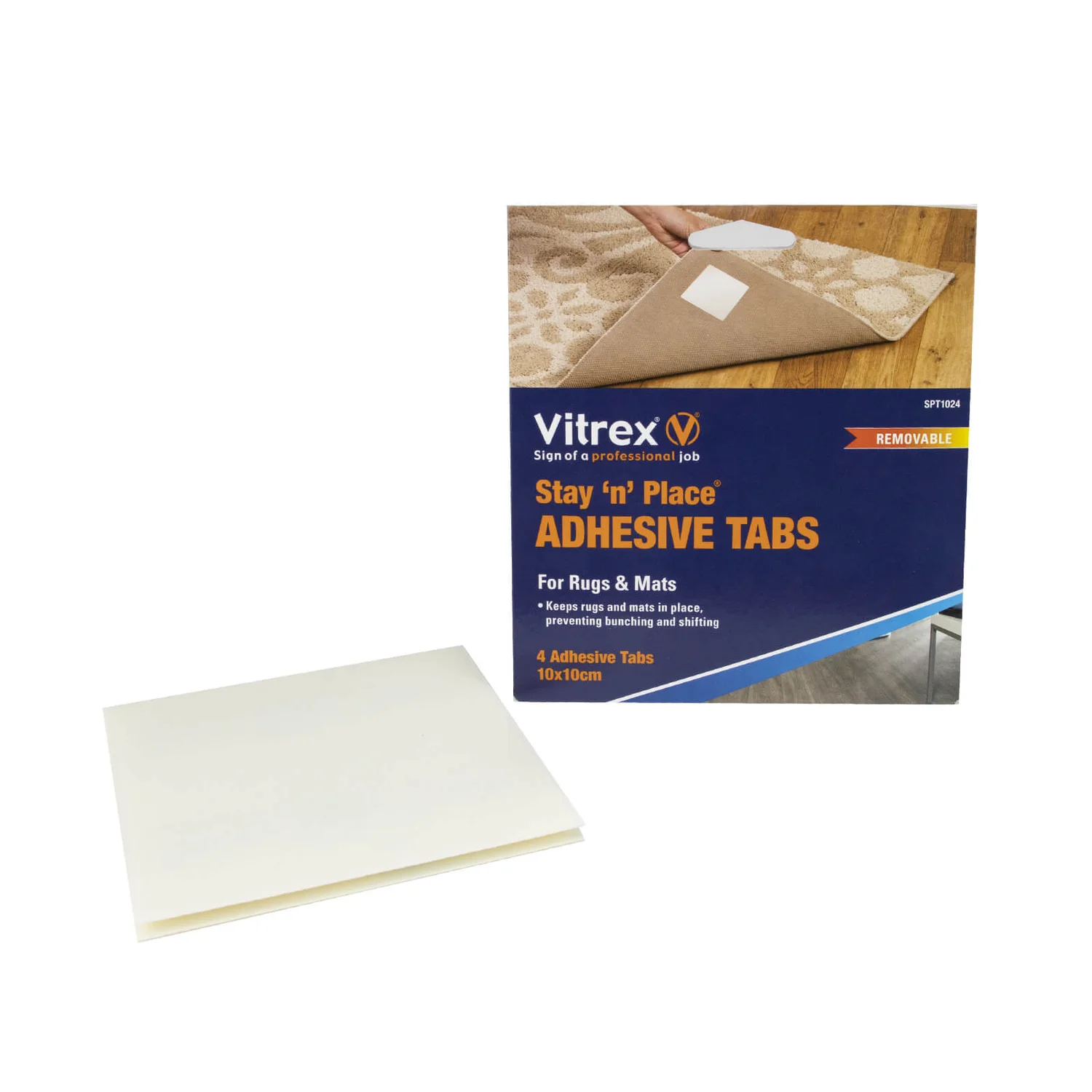 Vitrex Stay ‘n’ Place Adhesive Tabs are used for Rugs & Mats to prevent bunching and shifting