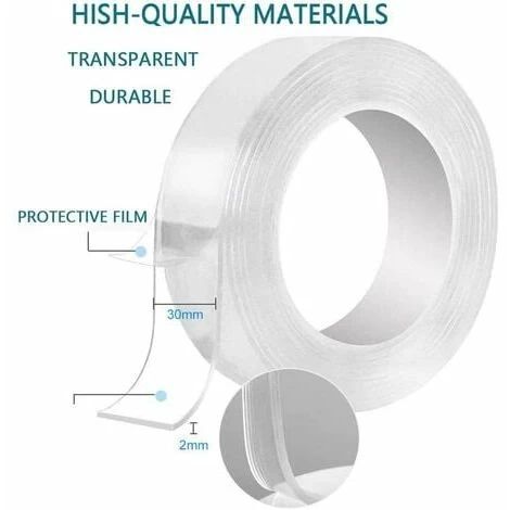 Description 2 [Resistant double-sided adhesive tape]: thanks to the new nanotechnology and adaptable materials, it can be attached on anySurface. It can hold 1kg on a smooth surface, so you can stick anything you want. 3 [Washable and Reusable]: If the double-sided tape gets dirty, no wipe or no detergent are needed. Simply rinse off. water and reapply strong adhesive tape. 4 [Wide use of seamless adhesive tape]: This versatile nano-adhesive tape can be to be used in all areas of life, eg. B. in the kitchen, office, mobile phone or car, in the living room, with tools and more. It can be used for inserting photos and posters, for attaching floor mats, for sticking objects and much more. 5 [DIY Cut]: It can be cut; to any size and length you want, saving space. It can be stretched, folded and folded to respond to your needs. It works perfectly in the temperature range of -16° C 62 ° C 6 [Ideal decoration]: Ideal for interior decoration and easy storage of items. If you have any questions after your purchase, please email us. We will help you to; solve the problem within 24 hours. solve. 7 Product Description 8  9 Welcome to our store, if you have any questions, please feel free to contact us, the following is our product description☟ 10 Ideal for home decor and a convenient way to store your belongings, strong, transparent, washable, real. usable, easy to clean; disassemble without leaving a trace, it will be a very nice and warm gift. 11 Function 12 1. Reusable 13 2. Suitable for; allSmooth surfaces 14 3. Can be cut freely 15 Specifications Main frame material: nanotape 16 Dimensions: length 5m / 3m / 1m * width 30mm * thickness 2mm< /div> 17 Package includes: 18 Nano band * 1 19 Notes: 20 If you have any questions regarding your shopping cart or your components, please contact us. 21  22  23 Sold by Briday Store